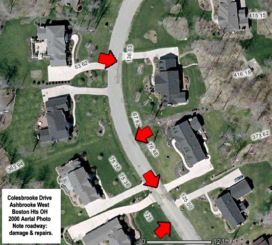 *[A contingent of irate citizens turned out from the Ashbrooke West neighborhood, off of Walters Rd., to complain about the deteriorating condition of Colesbrooke Drive, the main road in that development. This situation has continued for some time -- see notes on Council meetings of February 2002, June 2002, and especially September 2002. Extensive roadway damage is visible in this 2000 Aerial photo.